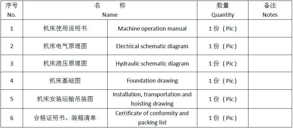 四.機(jī)床主要技術(shù)參數(shù)Main technical parameters of machine tools